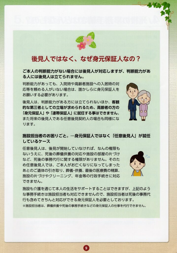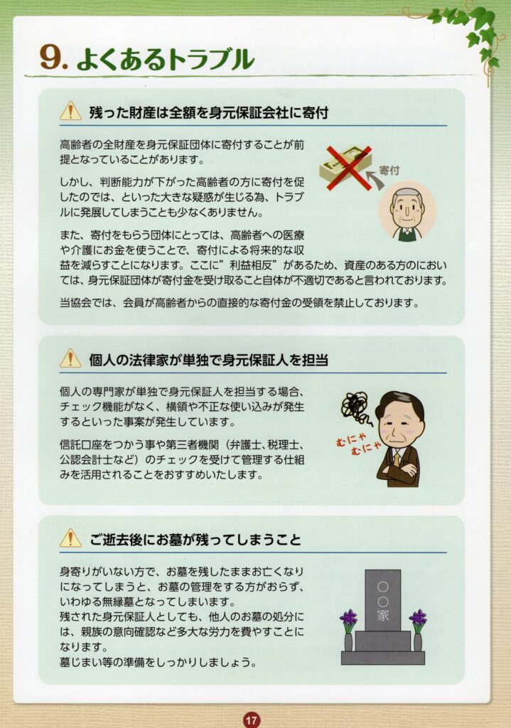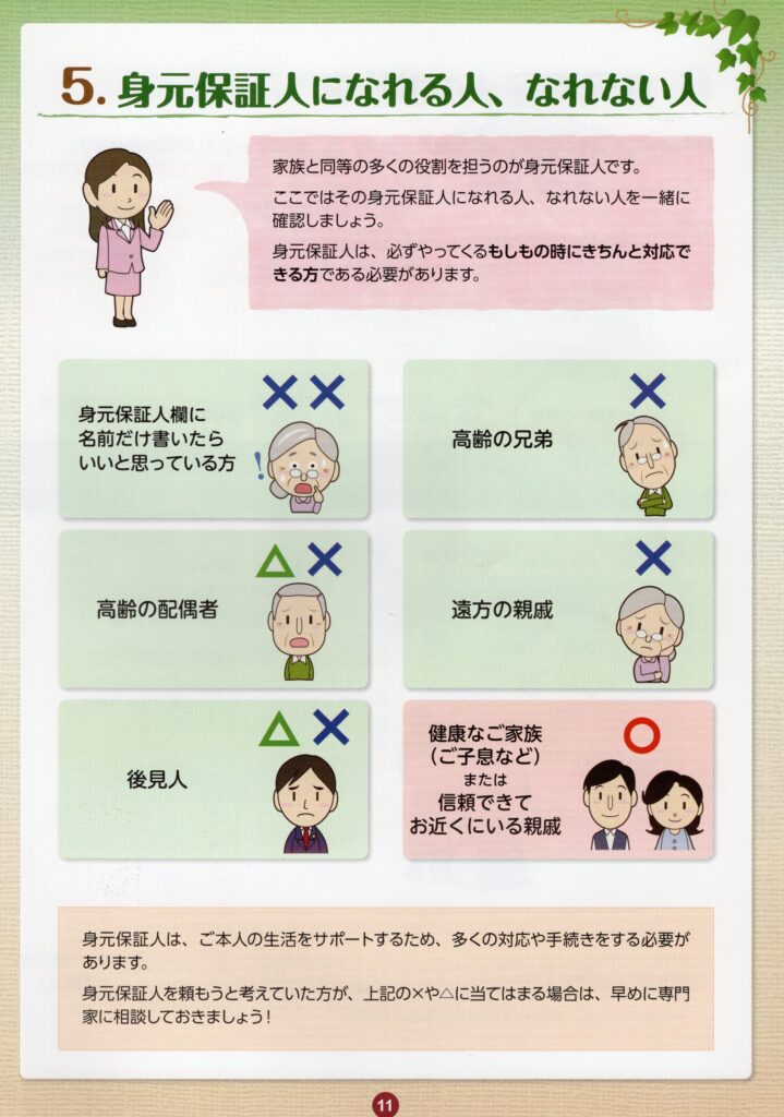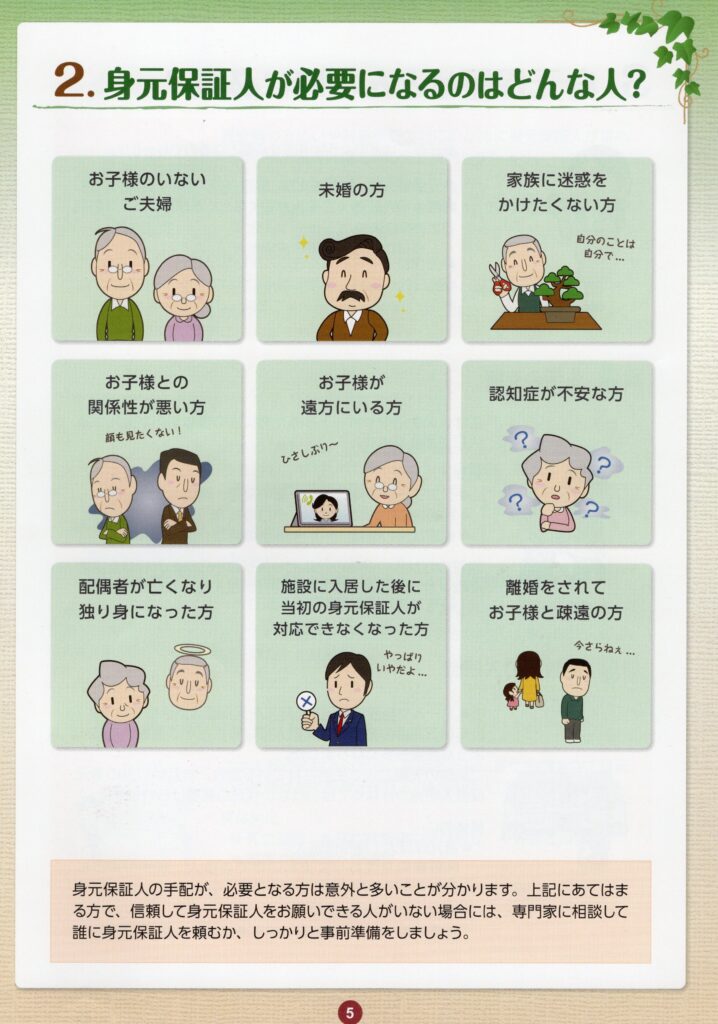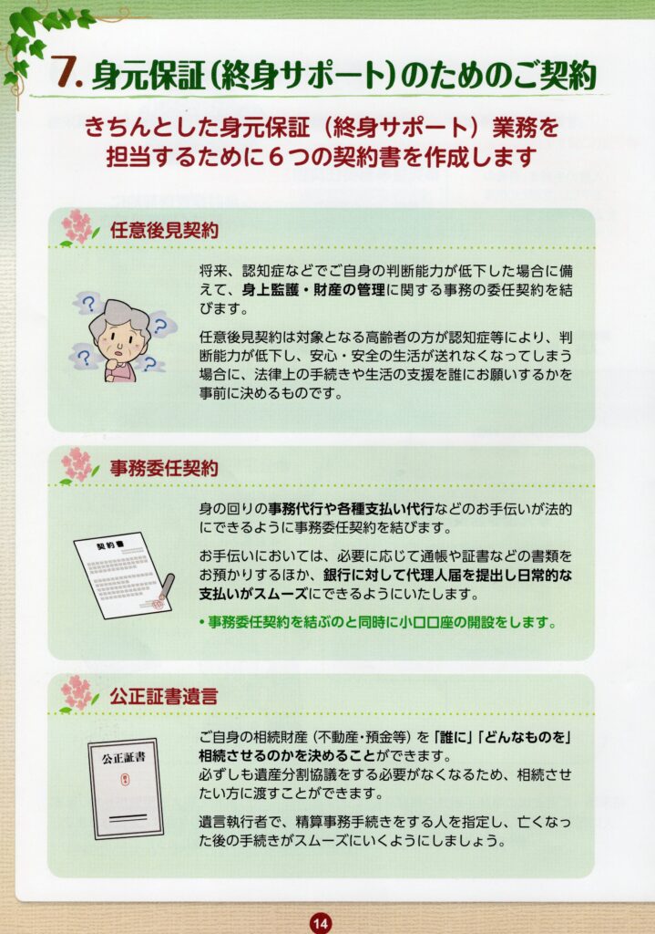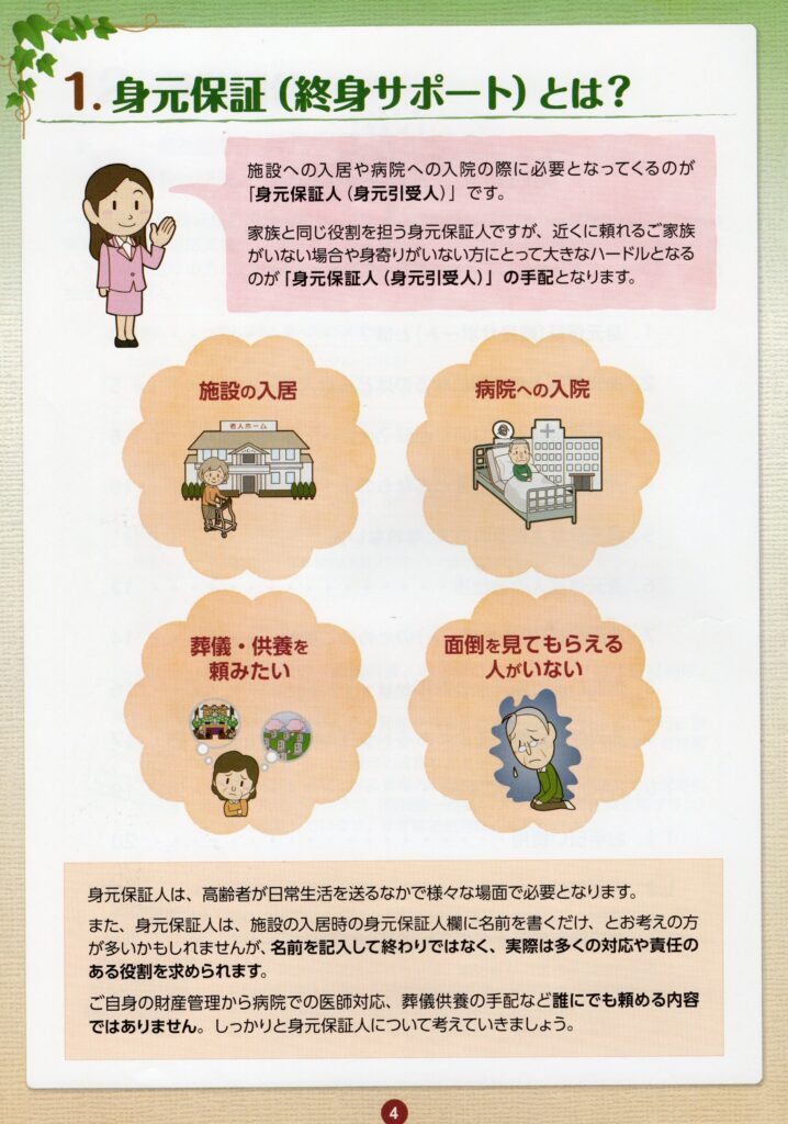 行政書士可児猛事務所は、法律家(士業)によって立ち上げられた全国最大級の身元保証団体である「一般社団法人身元保証相談士協会」および「一般社団法人いきいきライフ協会北信」と連携し、独自の身元保証サービスを提供しています。(パンフレット「身元保証読本」参照)