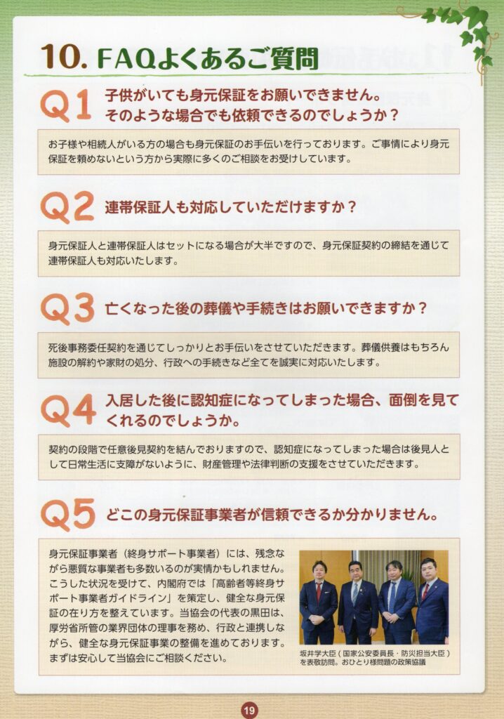 当事務所の身元保証終身サポートの特徴は次の通りです。